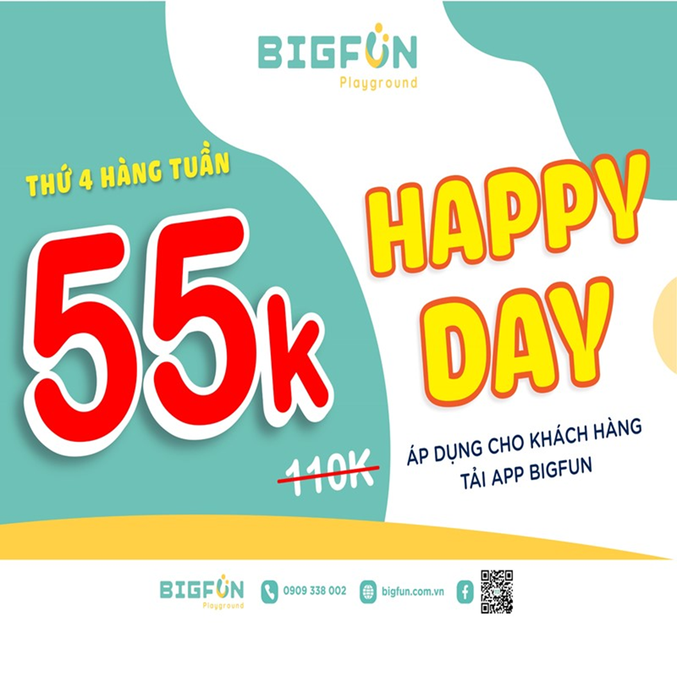 🎁 Happy Day promotion applies to customers who download and register as members on the Big Fun app!