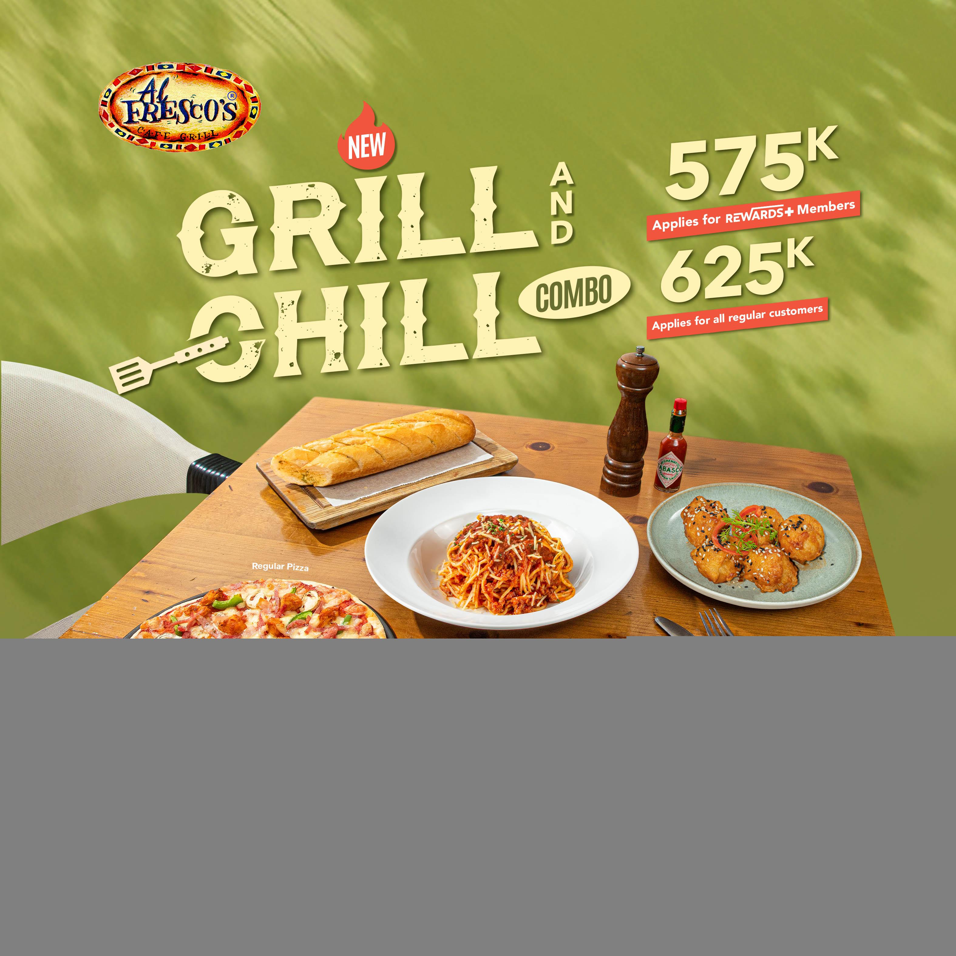 Lên tiệc linh đình với GRILL & CHILL COMBO. Tham khảo địa chỉ nhà hàng Al Fresco's gần nhất tại link: https://alfrescos.com.vn/stores