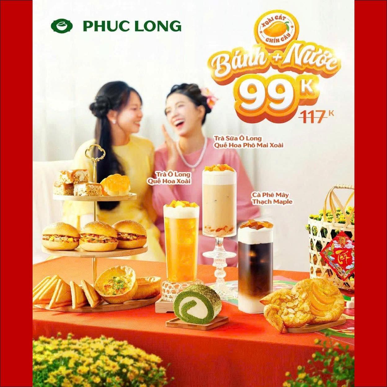 🌟 Gather your friends for a spring outing and enjoy 01 drink from the “Ripe Cat Mango” Collection plus 01 pastry from the crunchy 10-item Tết Pastry Feast, saving up to 18K — all for just 99K!