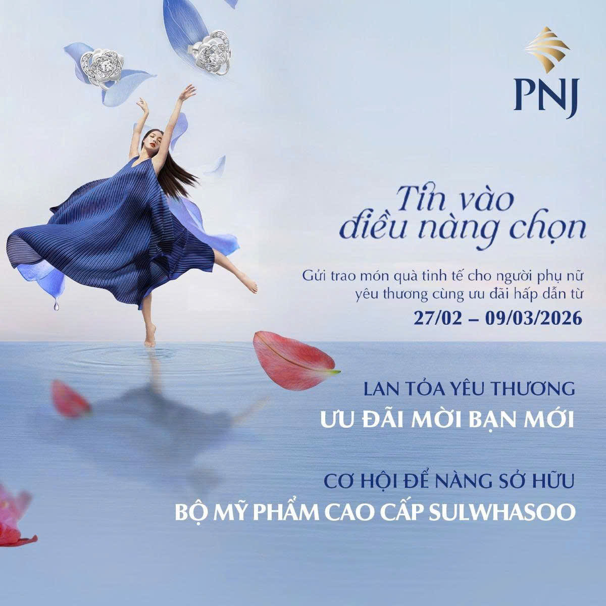 Tự tin, rạng rỡ và đầy bản lĩnh, nàng từng bước viết nên hành trình của riêng mình. Nhân dịp 8/3, PNJ gửi lời đồng hành và niềm tin dành cho mọi lựa chọn, mọi con đường nàng chọn qua những món quà trang sức tinh tế cùng loạt ưu đãi hấp dẫn từ 27/02 - 09/03/2026. Cùng PNJ ghé thăm sự kiện HÀNH TRÌNH TIN VÀO ĐIỀU NÀNG CHỌN và khám phá chuỗi hoạt động thú vị tại: