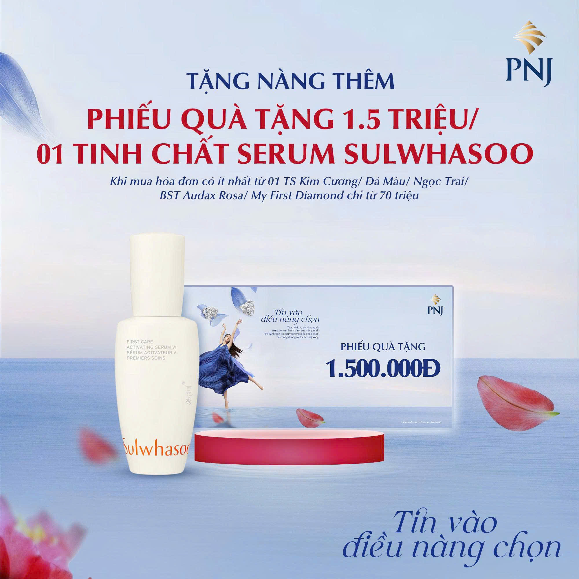 - Tặng nàng thêm Phiếu quà tặng 1.500.000Đ hoặc 01 tinh chất dưỡng da Sulwhasoo