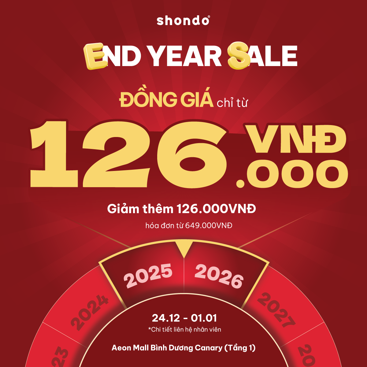 Visit Shondo [Level 1, AEON Mall Binh Duong Canary] from December 24 – January 1, 2026 before your size runs out!