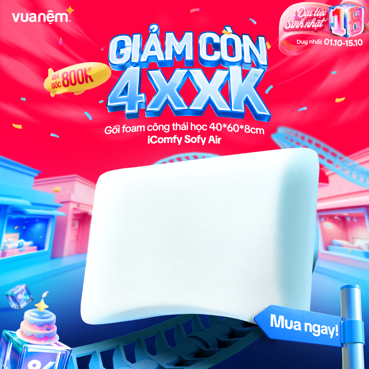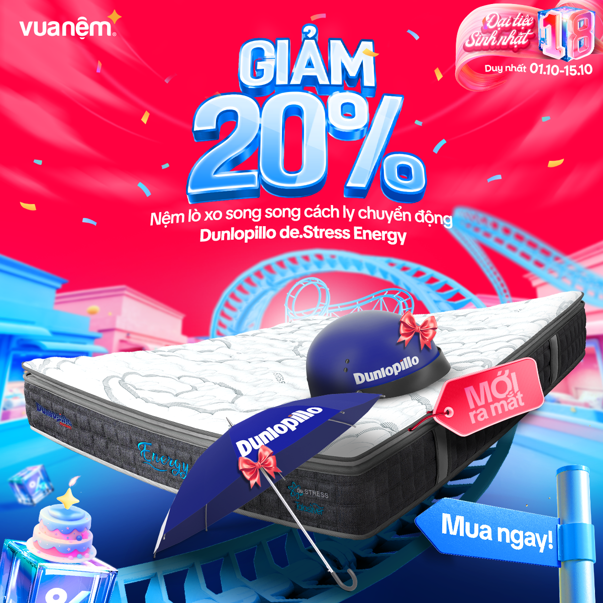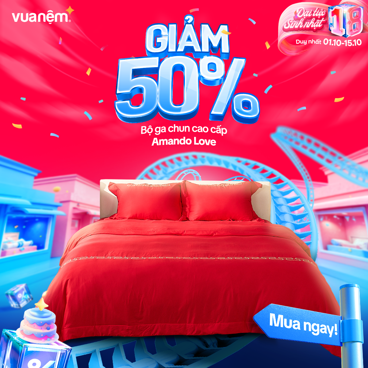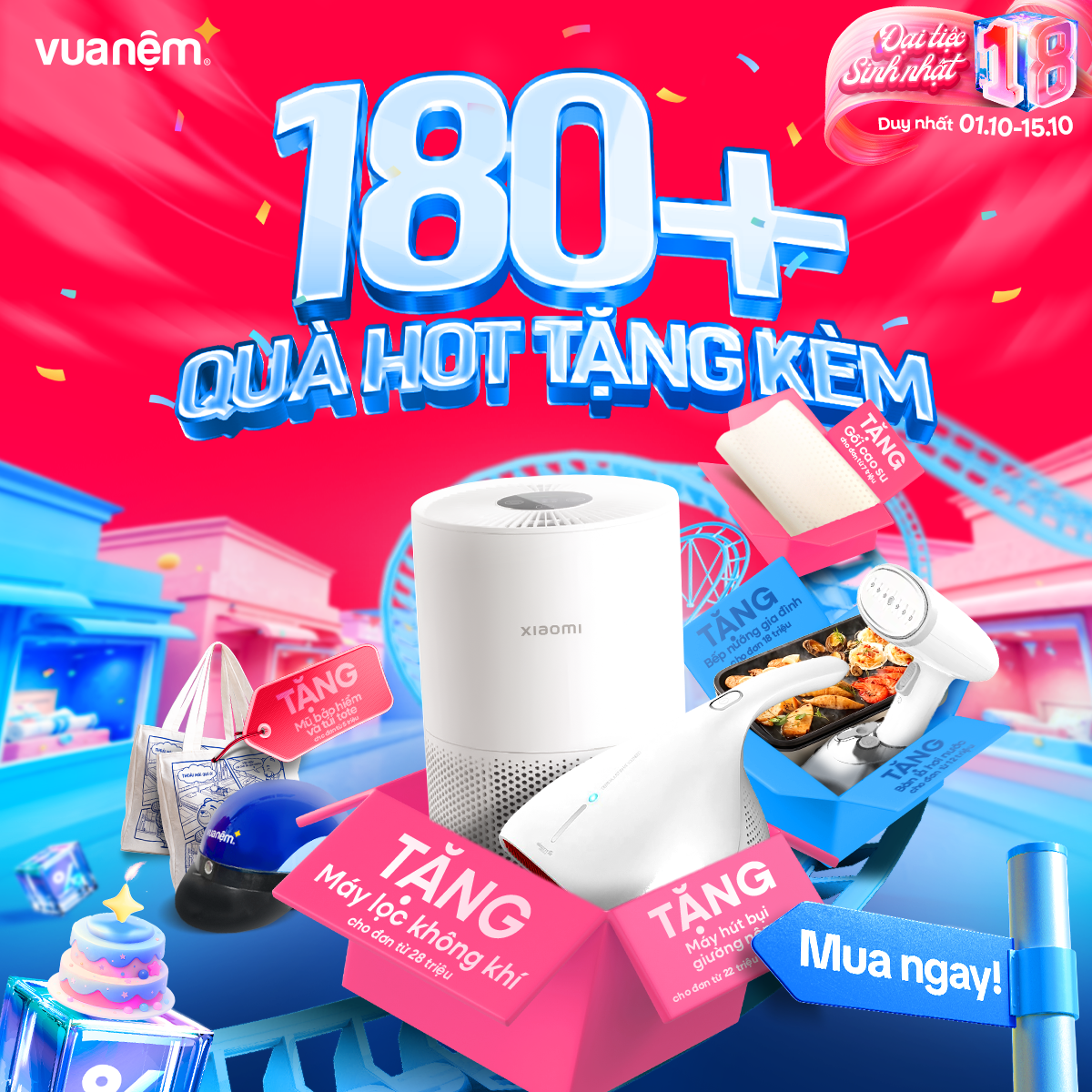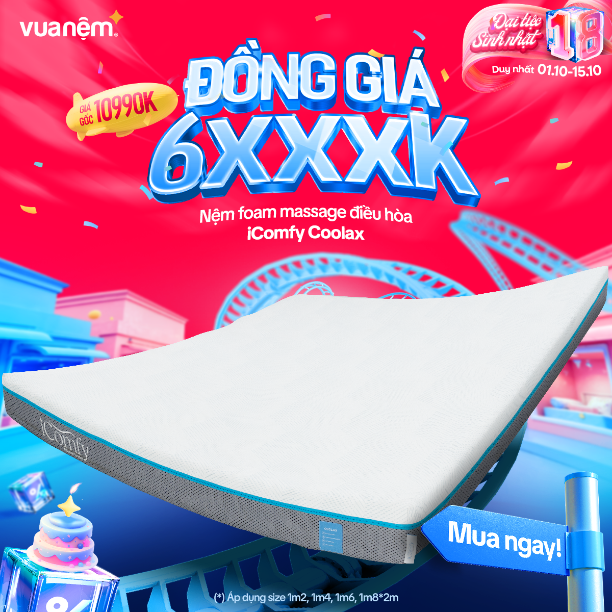 🎉 From 01/10 – 15/10, Vua Nệm goes big for its 18th birthday with crazy hot deals, tons of gifts, and unbeatable discounts worth up to tens of millions! The golden chance to own premium, authentic mattresses like never before: